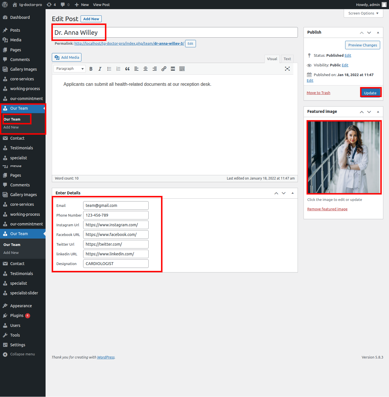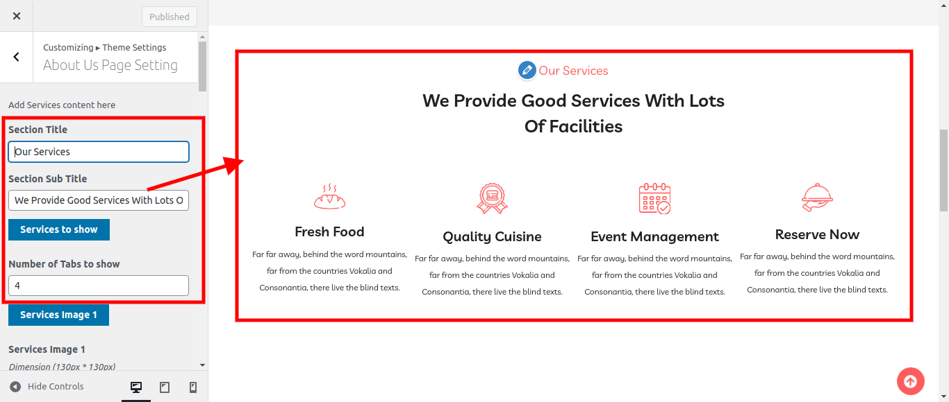 In order to setup the following section go to Appearance -> Customize -> Theme Settings -> Our Blog