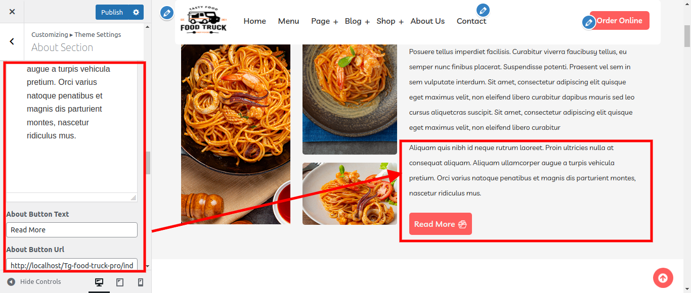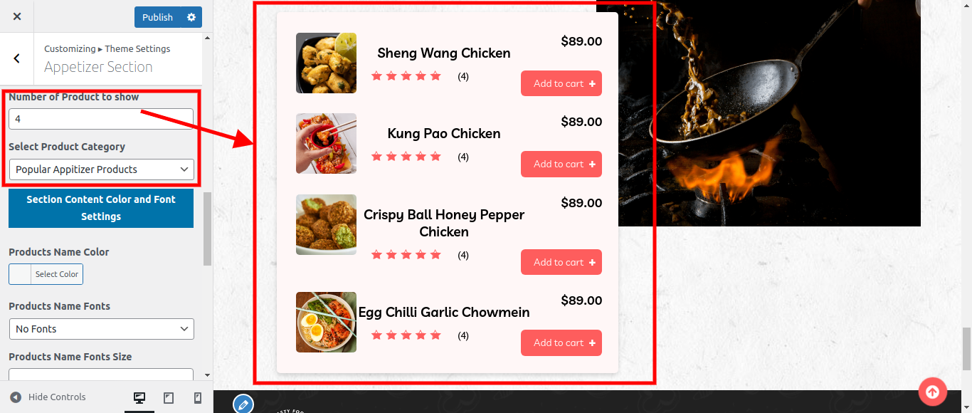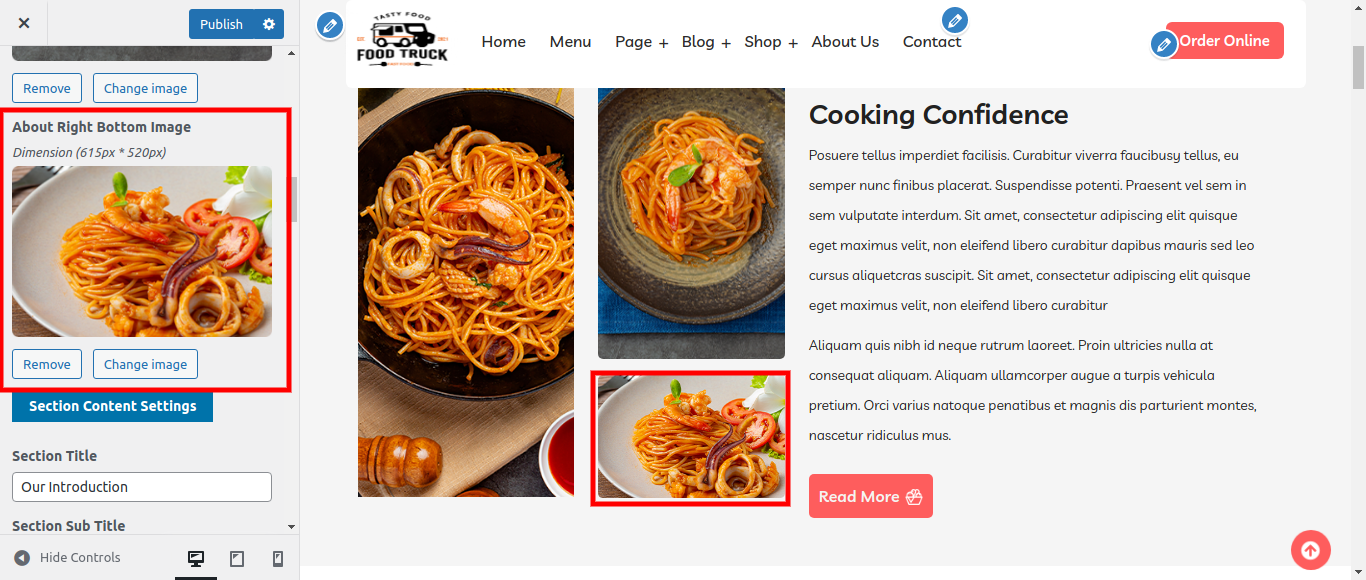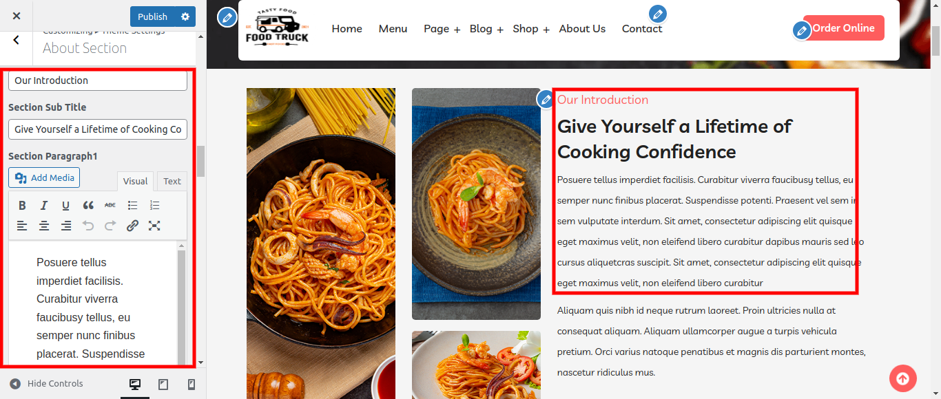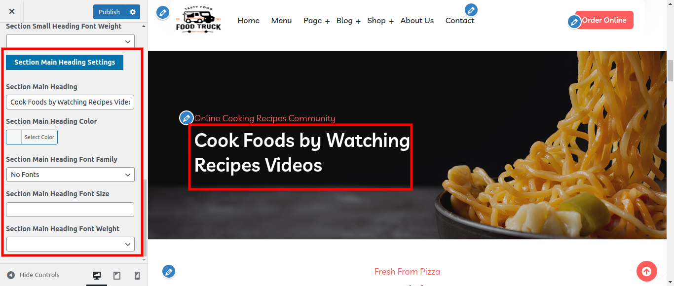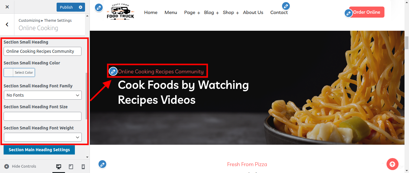 Go to Appearance >>Customize >> Theme Settings >> Online Cooking