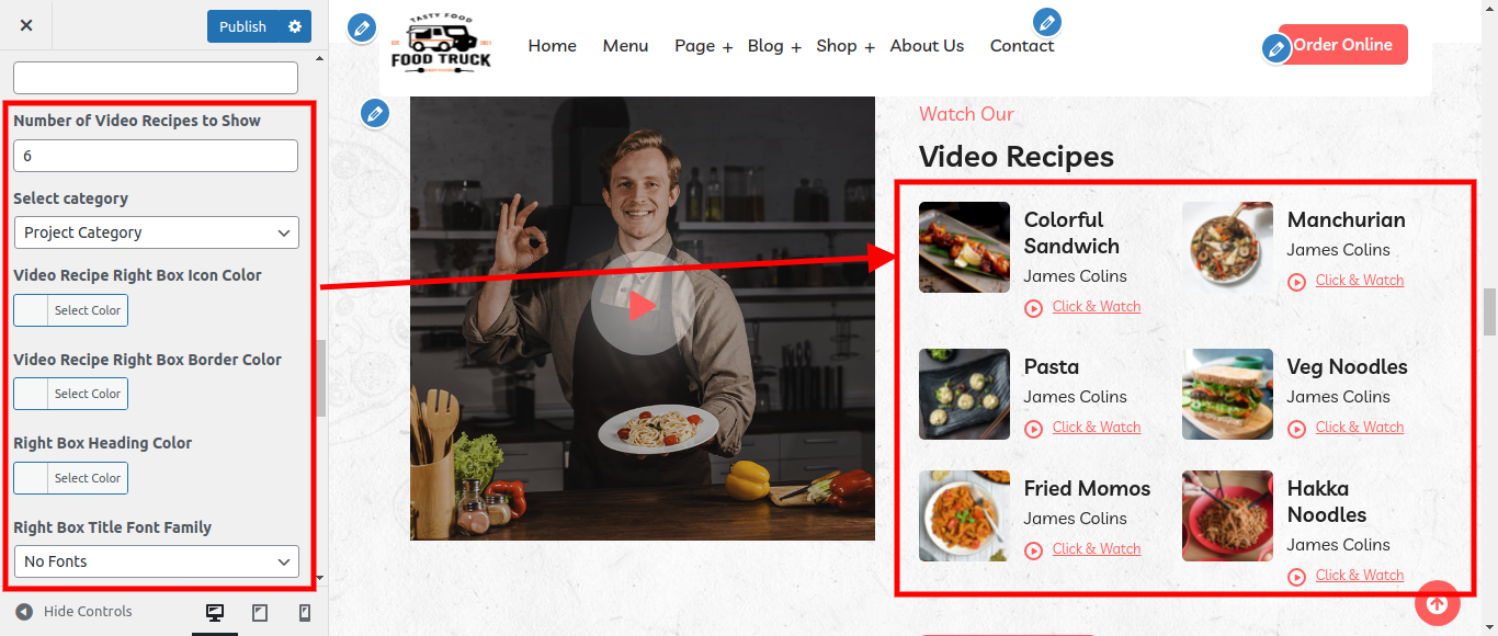 Go to Appearance -> Customize -> Theme Settings ->Video Recipes