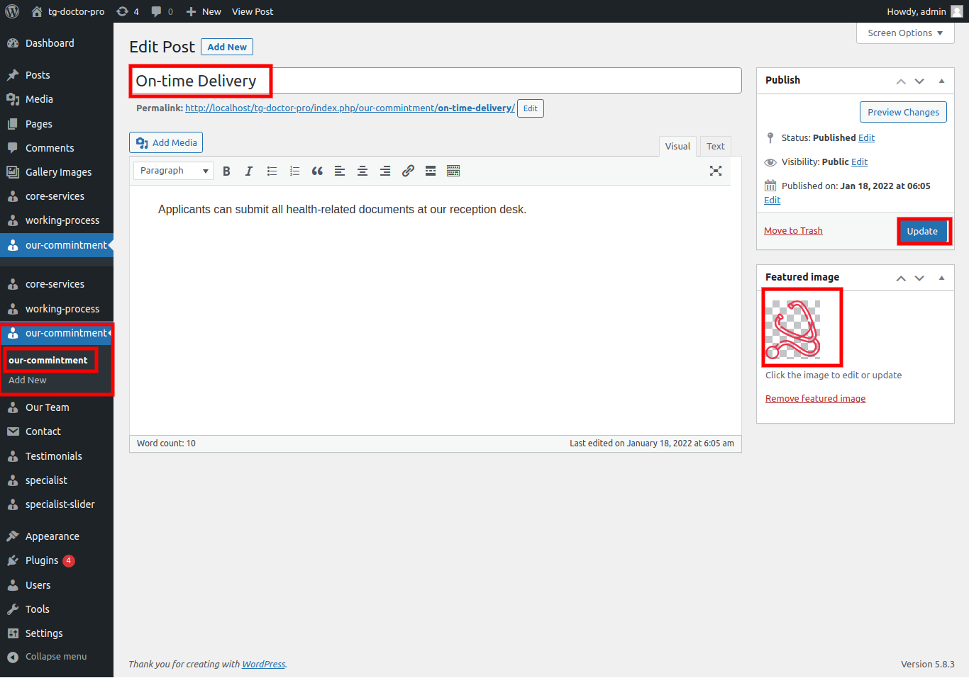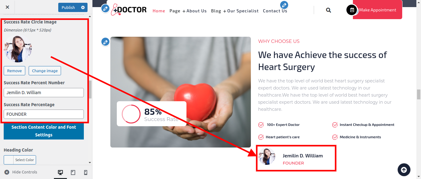 In order to setup the following section go to Dashboard -> testimonials -> Add New