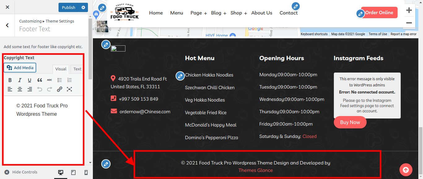 Go to Appearance >> Customize >> Theme Settings >>Contact Section