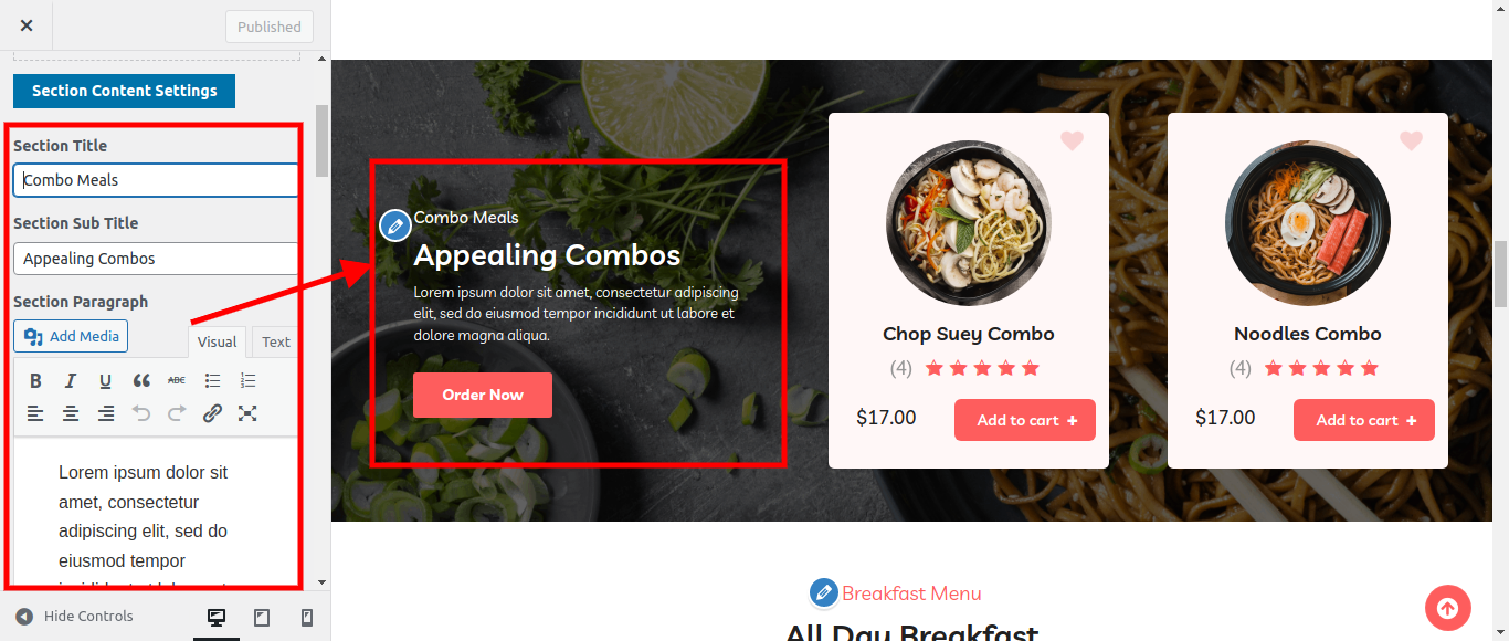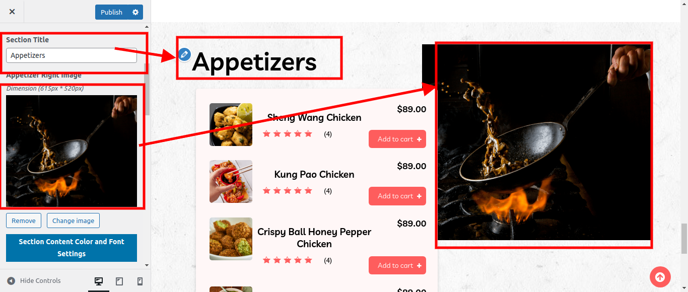 Go to Appearance -> Customize -> Theme Settings ->Special Dishes