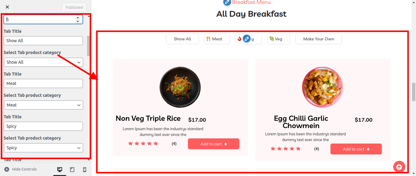In order to setup the following section go to Dashboard -> dishes -> Add New