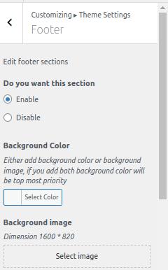Go to Appearance >> Customize >> Theme Settings >>Footer Section