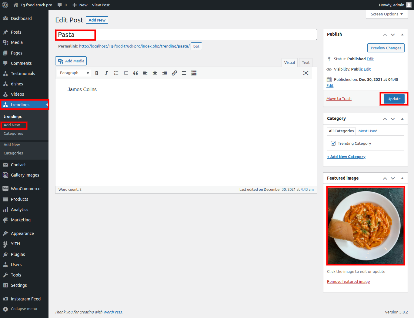 In order to setup the following section go to Dashboard -> trendings -> Add New